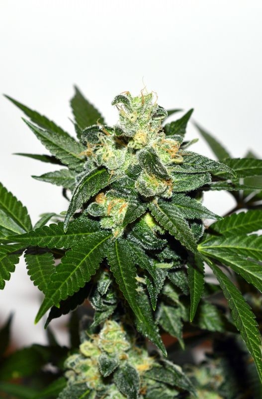 Aspecto de la Flor. Sus colas florales son el orgullo de cualquier cultivador. Desarrolla racimos inmensos, con cálices muy hinchados y una excelente proporción cáliz-hoja. Este rasgo no solo la hace visualmente imponente, sino que reduce enormemente el tiempo que pasarás pelando con las tijeras.