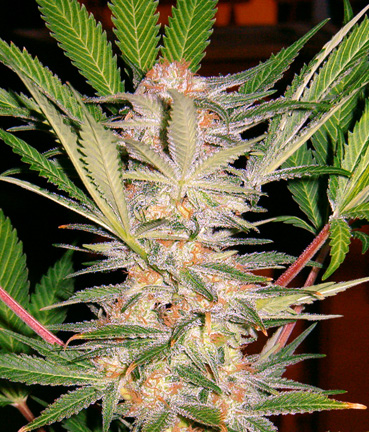 Aspecto de la Flor. El manicurado será una tarea pegajosa. Sus flores son duras como diamantes y presentan una densidad espectacular, terminando su ciclo vital cubiertas por un grueso abrigo de tricomas blancos. Con bajadas de temperatura, suele regalar bellos tonos morados y azulados.