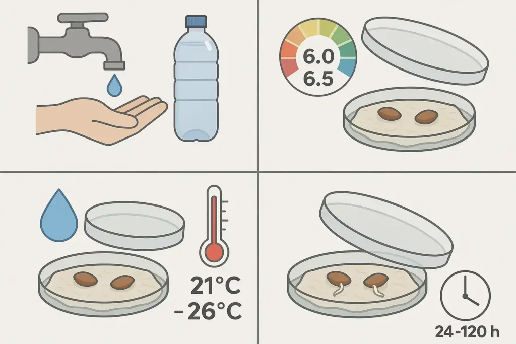 Always use clean utensils. Wash your hands and use distilled or bottled water with a slightly acidic pH (6.0-6.5). This minimizes the risk of pathogens attacking the seed at its most vulnerable moment. - Optimal humidity and temperature: the perfect environment to wake the seed.