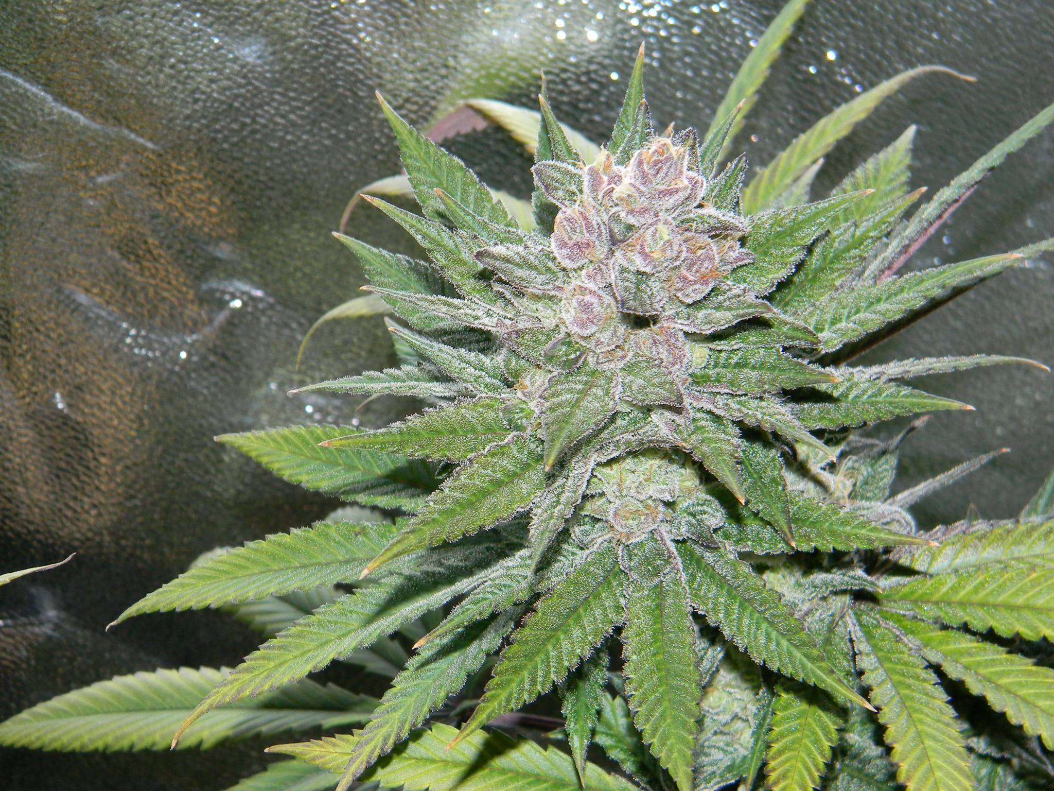 Aspecto de la Flor. El manicurado será una tarea pegajosa. Sus flores son duras como diamantes y presentan una densidad espectacular, terminando su ciclo vital cubiertas por un grueso abrigo de tricomas blancos. Con bajadas de temperatura, suele regalar bellos tonos morados y azulados.