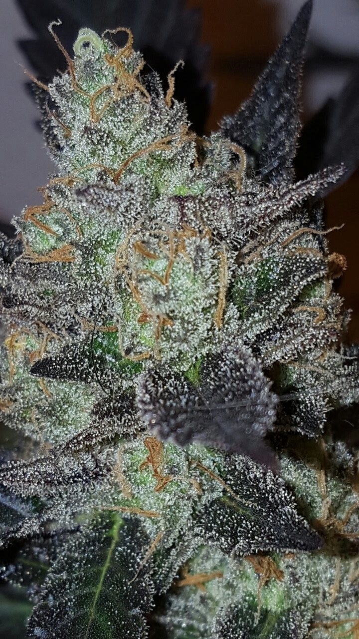 Aspecto de la Flor. Sus colas florales son el orgullo de cualquier cultivador. Desarrolla racimos inmensos, con cálices muy hinchados y una excelente proporción cáliz-hoja. Este rasgo no solo la hace visualmente imponente, sino que reduce enormemente el tiempo que pasarás pelando con las tijeras.