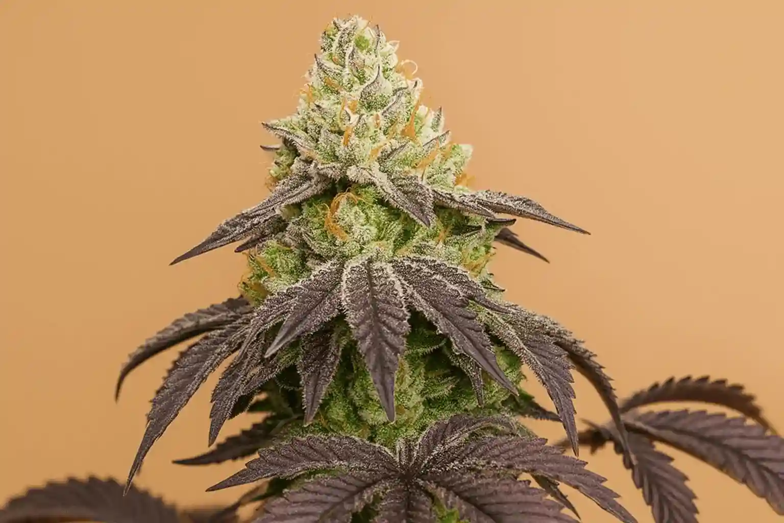 Aspect de la fleur. Les bourgeons sont lourds et denses, recouverts d'une épaisse couche de trichomes qui brillent sous la lumière. Ils présentent des couleurs allant du vert citron vert aux tons violets profonds, avec des pistils orange vif qui ressortent visuellement. Son arôme sucré avec des touches de menthe et de terre humide se traduit par une saveur complexe et persistante qui reste après chaque inhalation.
